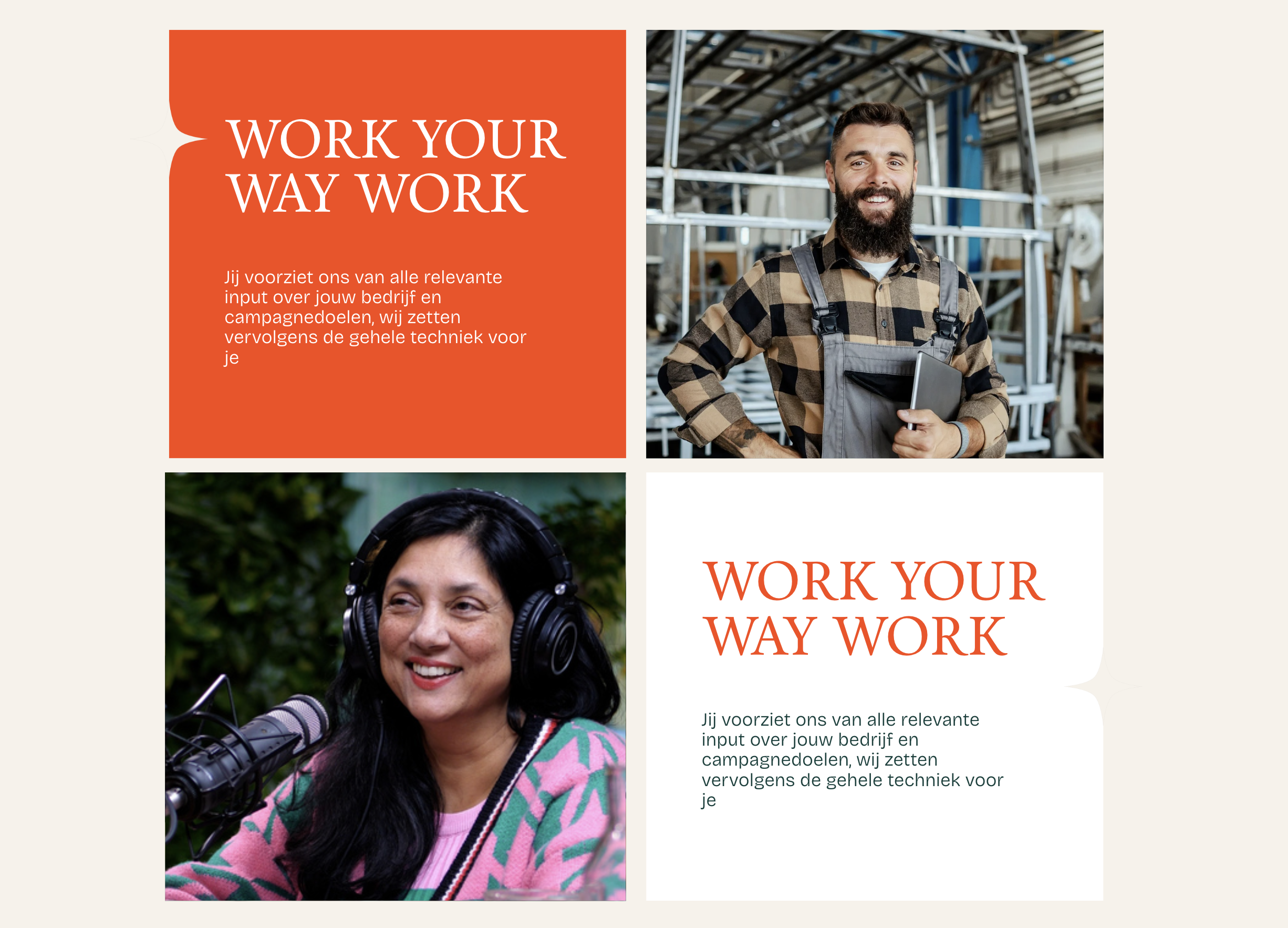 Het ster-element dient als een uniek visueel herkenningspunt en wordt altijd toegepast op de overgang tussen twee vlakken. In de praktijk gebruiken we hiervoor altijd de helft van de ster.