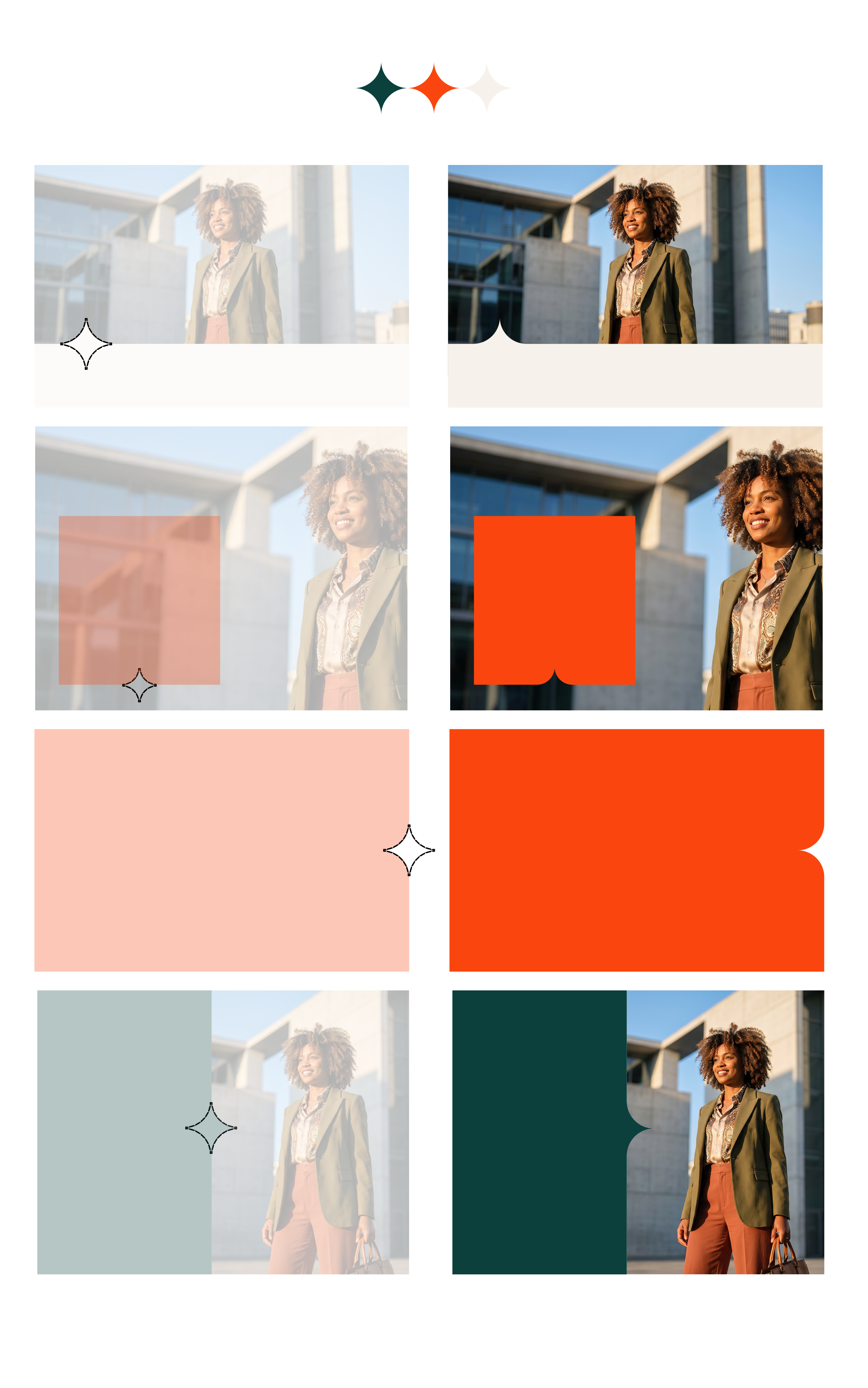 Plaats de ster altijd op de snijlijn (de rand) van een foto of een kleurvlak om deze subtiel uit te lichten en een organische verbinding te creëren tussen verschillende lay-out-elementen.
